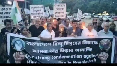 बांग्लादेश में हिंदुओं पर हो रहे अत्याचार को लेकर विभिन्न बंग समुदाय के संगठनों ने आम बागान से लेकर साकची गोल चक्कर तक कैंडल सह आक्रोश मार्च निकाला