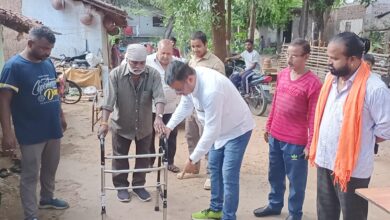 कुर्सी के सहारे चल रहे भाजपा कार्यकर्ता को भाजपा नेता विकास सिंह ने उपलब्ध कराया मेडिकल वॉकर ।